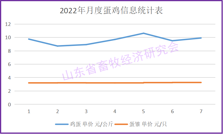 7月份鸡蛋供应偏紧,且市场需求恢复性提升,两方面助推蛋价走高。据山东省畜牧经济研究会监测分析,7月份,我省蛋价回升蛋鸡养殖利润好转。本月,我省鸡蛋销售平均价格为9.92元/公斤,同比回升8.23%,环比回升4.31%。蛋雏鸡价格3.25元/只,同比回落6.22%,环比回落0.61%。蛋鸡配合料价格3.42元/公斤,同比升高7.64%,环比持平。