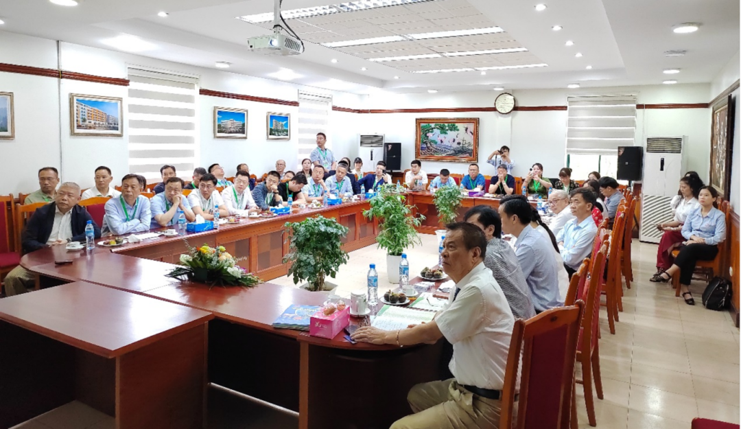 考察团团长马闯先生向越南畜牧业协会会长Mr. Nguyen Xuan Duong赠送纪念礼品二、与越南最大的动保企业之一HANVET Veterinary Pharmaceutical Joint Stock Company会议研讨、参观公司和在其公司午餐交流