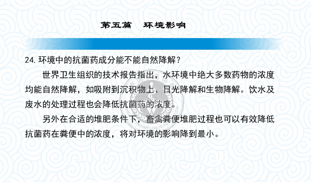 兽药使用与食品安全二十五问--环境中的抗菌药成分能不能自然降解?